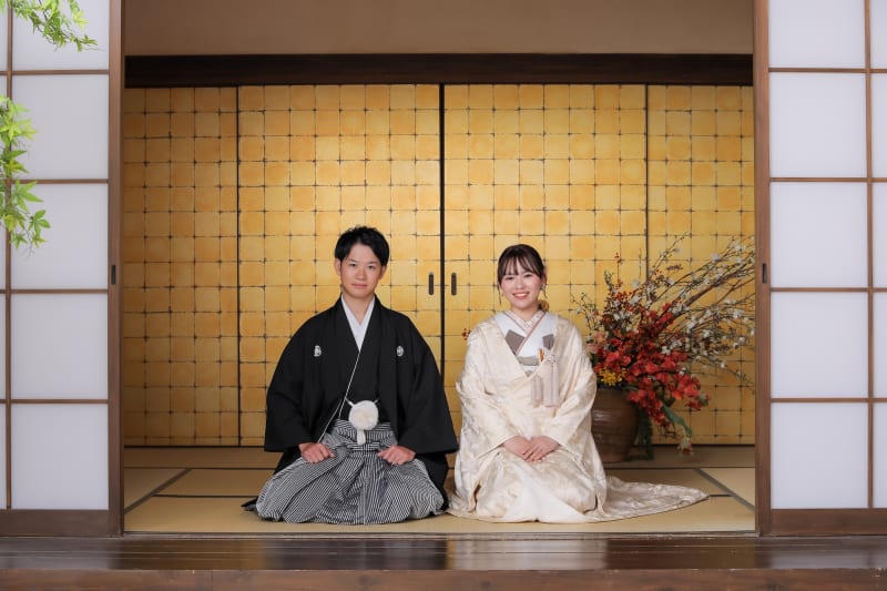 お座敷で正座をするお二人の姿が凛としていて美しいお写真に!