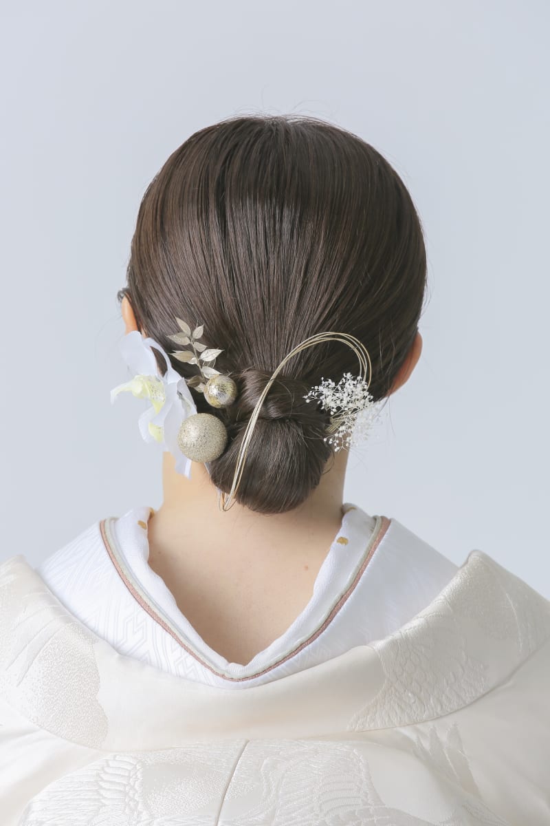 水引を持ってきてくださったので立体感があるタイトシニヨンで仕上げました。