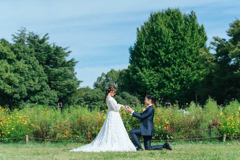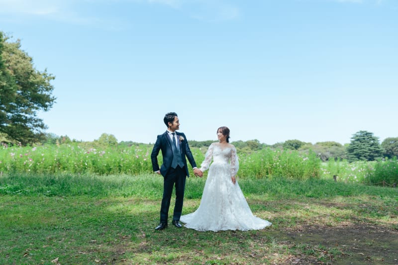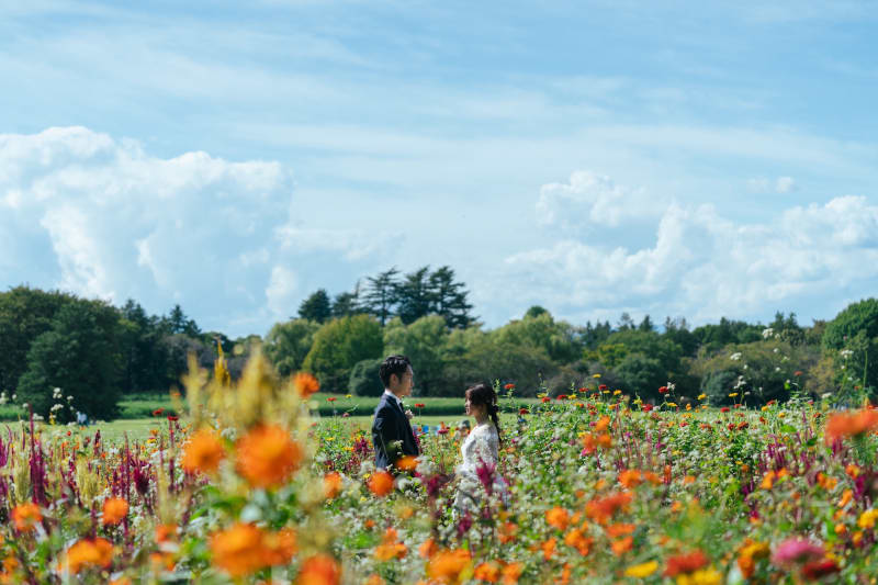 昭和記念公園のコスモスとブーケガーデンで紡ぐ、秋のウェディングフォト