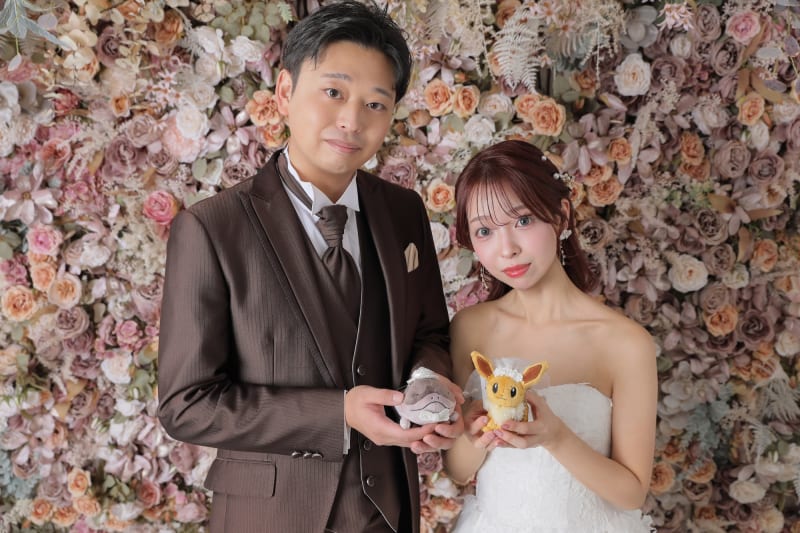 その甘えるような仕草がとても愛らしく、光に包まれたおふたりの距離感がより特別に映ります。