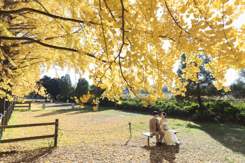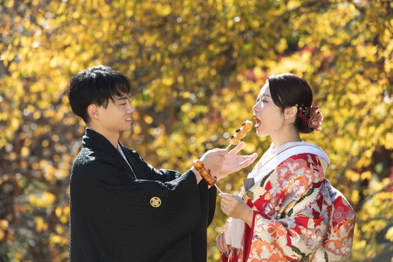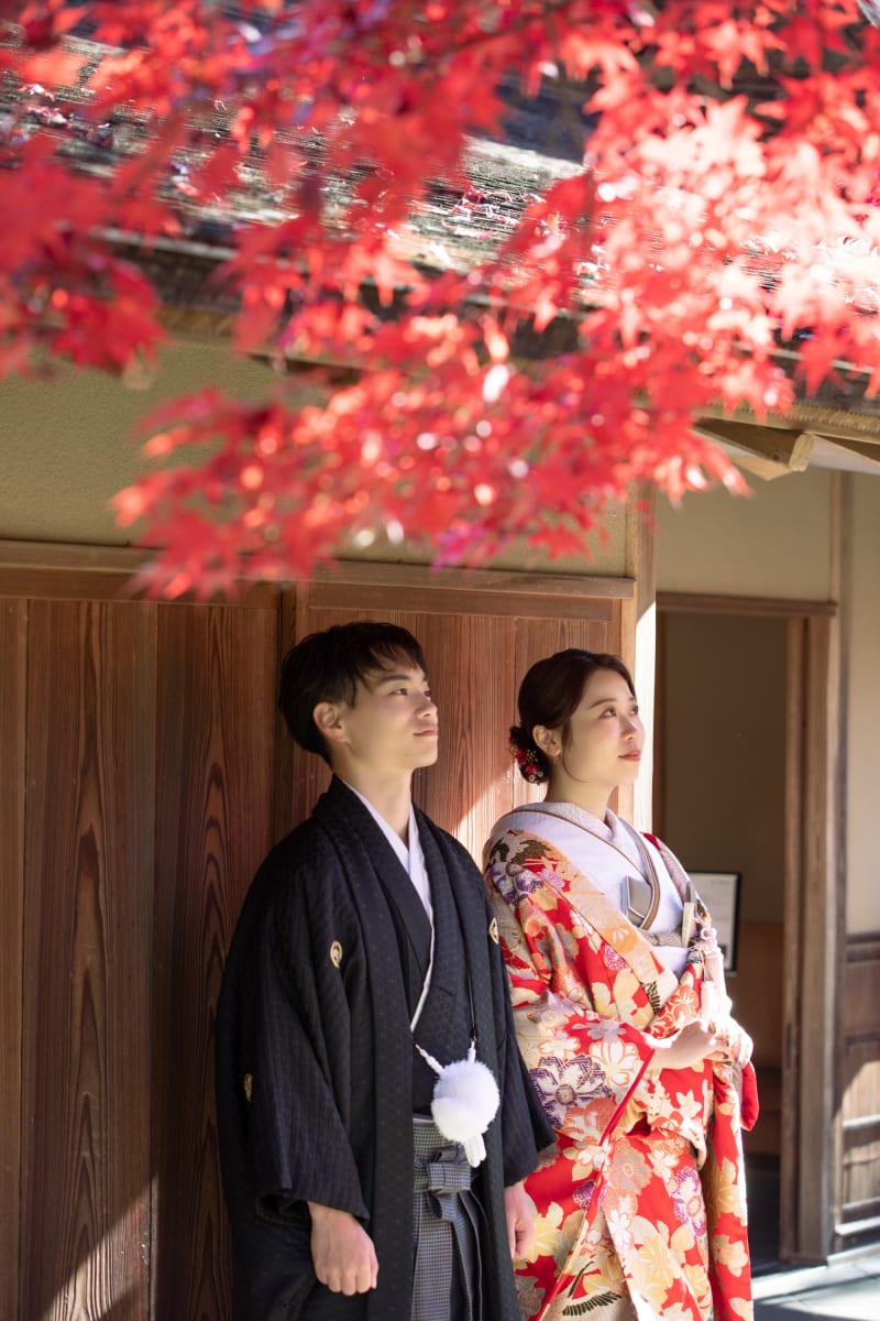 紅葉の色付きがとても綺麗でお二人のお衣装と相性バッチリでした◎