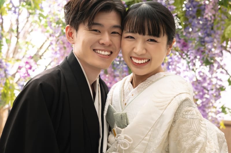柔らかい光と藤のお花はお二人の優しい笑顔と雰囲気バッチリでした✨