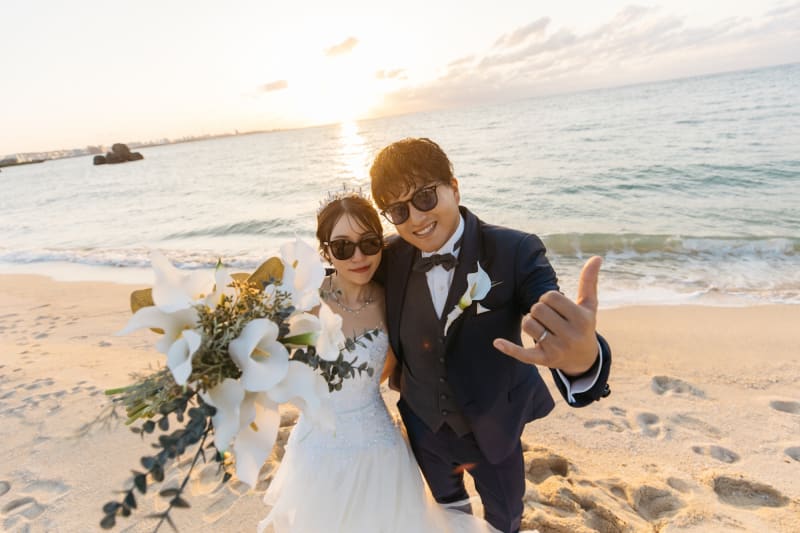 沖縄店から徒歩1分の場所にあるアラハビーチは一番人気の撮影スポットです。