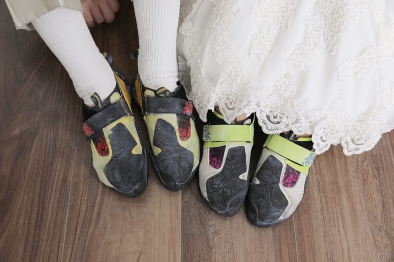 ボルダリングシューズを持ってきてくださいました!一緒に履いてジャーン😎