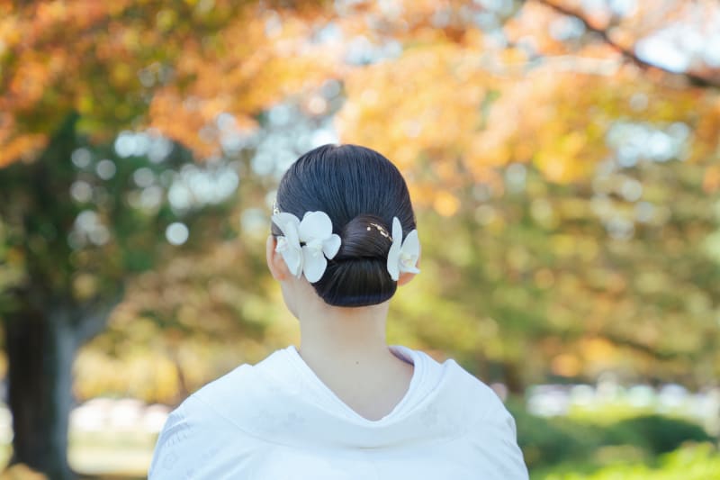 和装にはふわふわなシニヨンも似合いますがツルッとしたシニヨンで大人っぽく仕上げることもできます✨