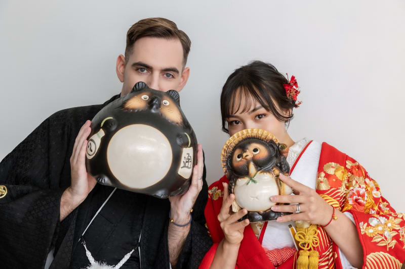信楽焼の福狸で、お二人に福を呼び込んでくれそうな、とっても愛嬌のある表情です🦝✨