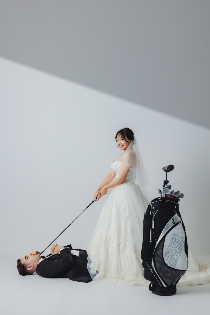 お二人の趣味であるゴルフ⛳でも遊び心いっぱいの撮影を!