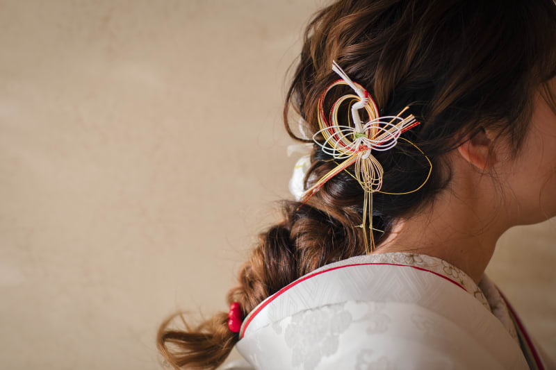 鶴の飾りをつけて華やかに