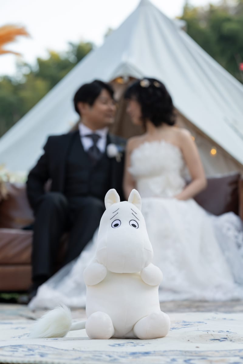 驚き顔のムーミンを活かしたくて、お二人にはムーミンの背後でめちゃめちゃ接近していただきました!