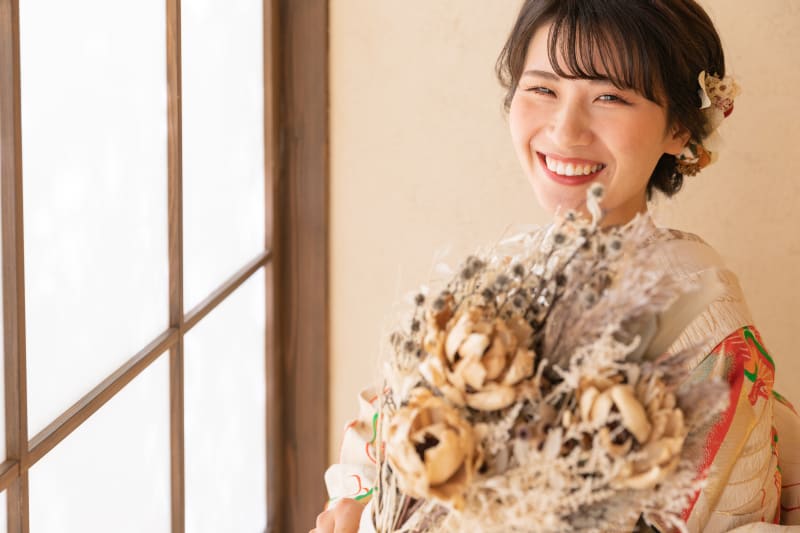 和装はカチッとしたポーズが多くなってしまいますが、力が抜けたポーズもいいですよね!