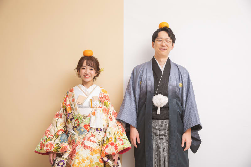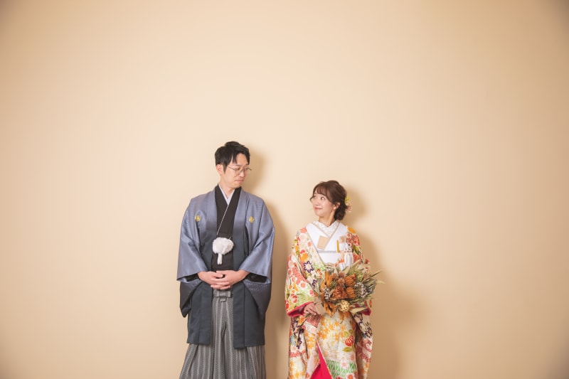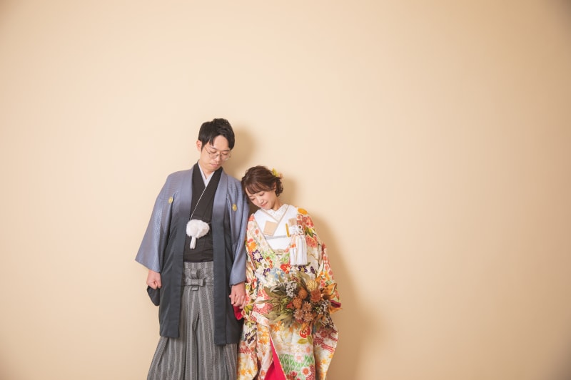 ベージュのシンプルな壁でお二人の雰囲気を!