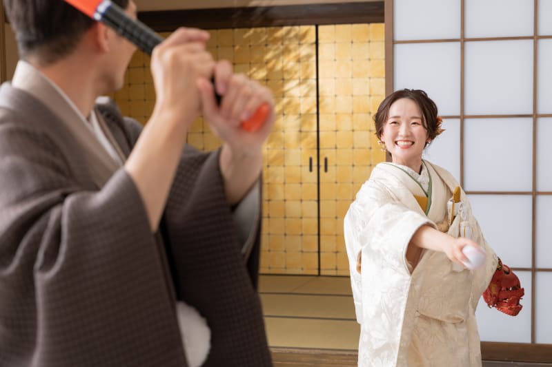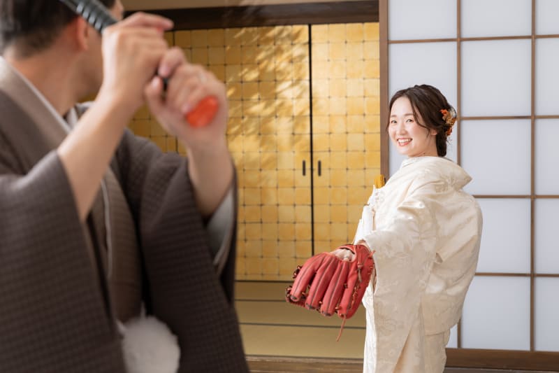 今回は、屋内庭園スタジオで撮影したお客様の、お二人らしさ全開のお写真をご紹介致します!