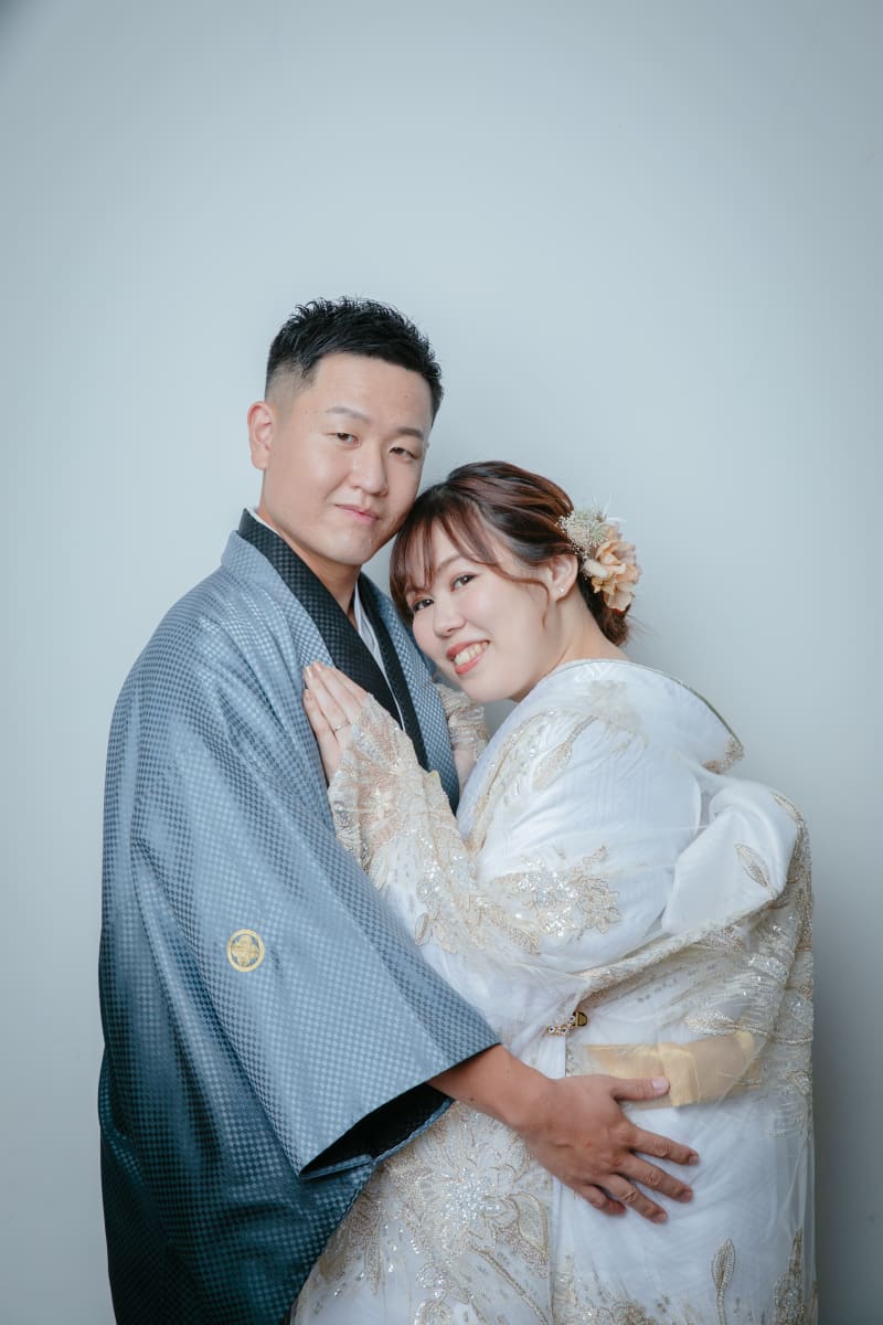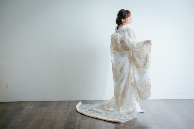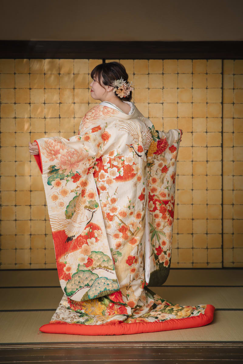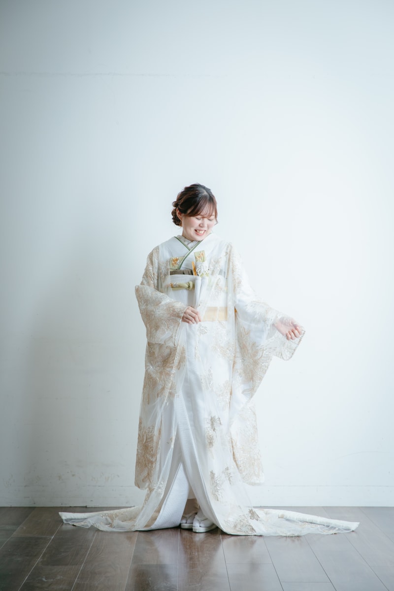 レース打ち掛けにチェンジして背景は白壁で撮りました📷