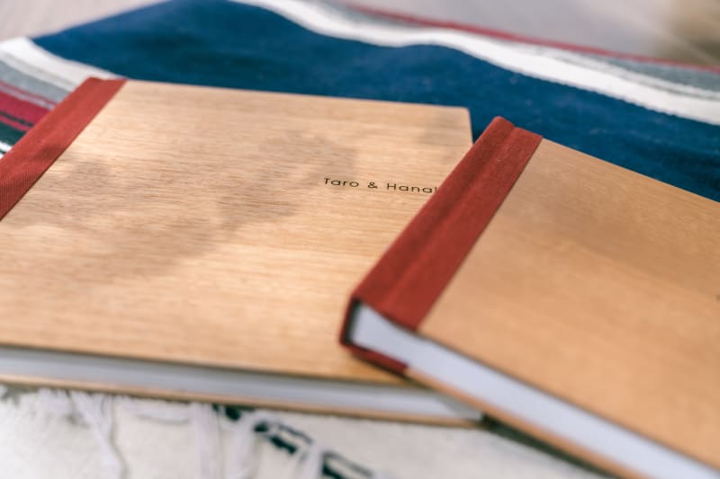 表紙にお写真が載らないシンプルな作りでもあり、本物の木を使用しているため、高級感も感じられるアルバムです。
