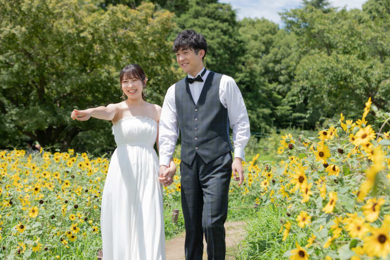 青空がとても素敵だったこの日、ひまわりと青空とお二人の笑顔が夏を感じてとても素敵です!
