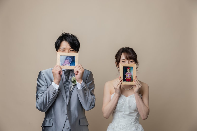 小さい時のお写真を使って顔を隠した撮影。お二人からのリクエストもバッチリ撮影します!