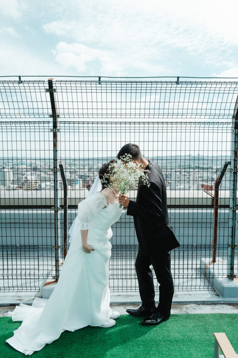キスをしている!?爽やかな屋上で素敵な一枚を!