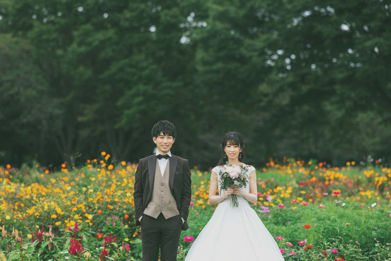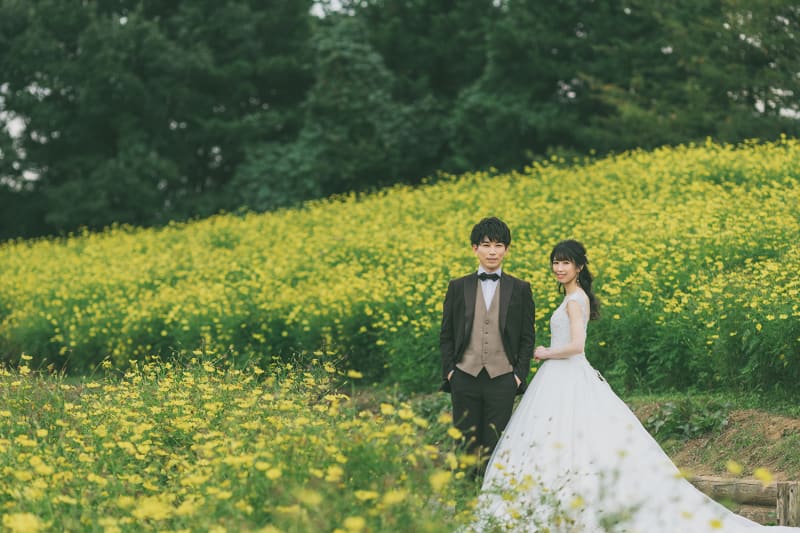 花の丘一面に咲き誇る姿は圧巻です。ウェディングドレスとも相性抜群です。