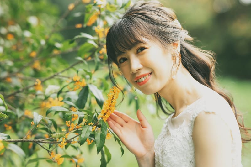 キンモクセイと新婦様。可愛らしい一枚になりました。