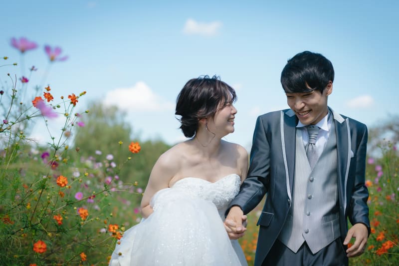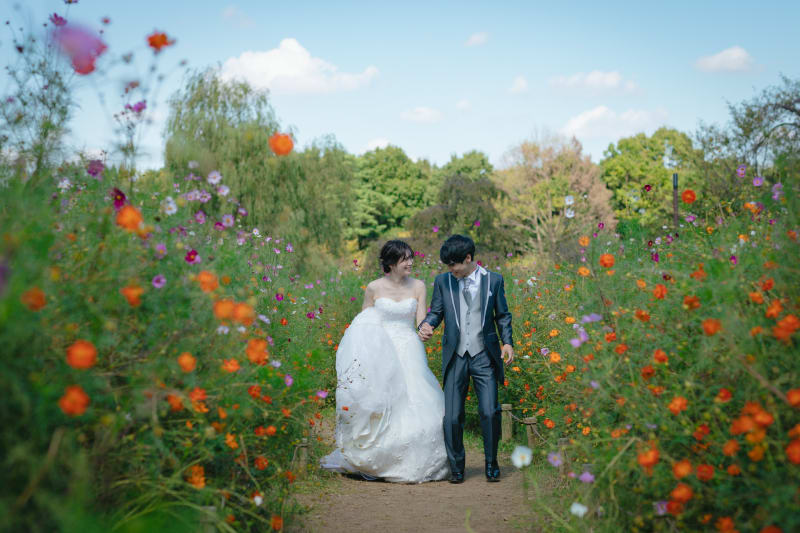少し涼しくなってきたこの時期に見頃を迎えた、コスモス畑にて撮影を行なったお客様のご紹介です✨