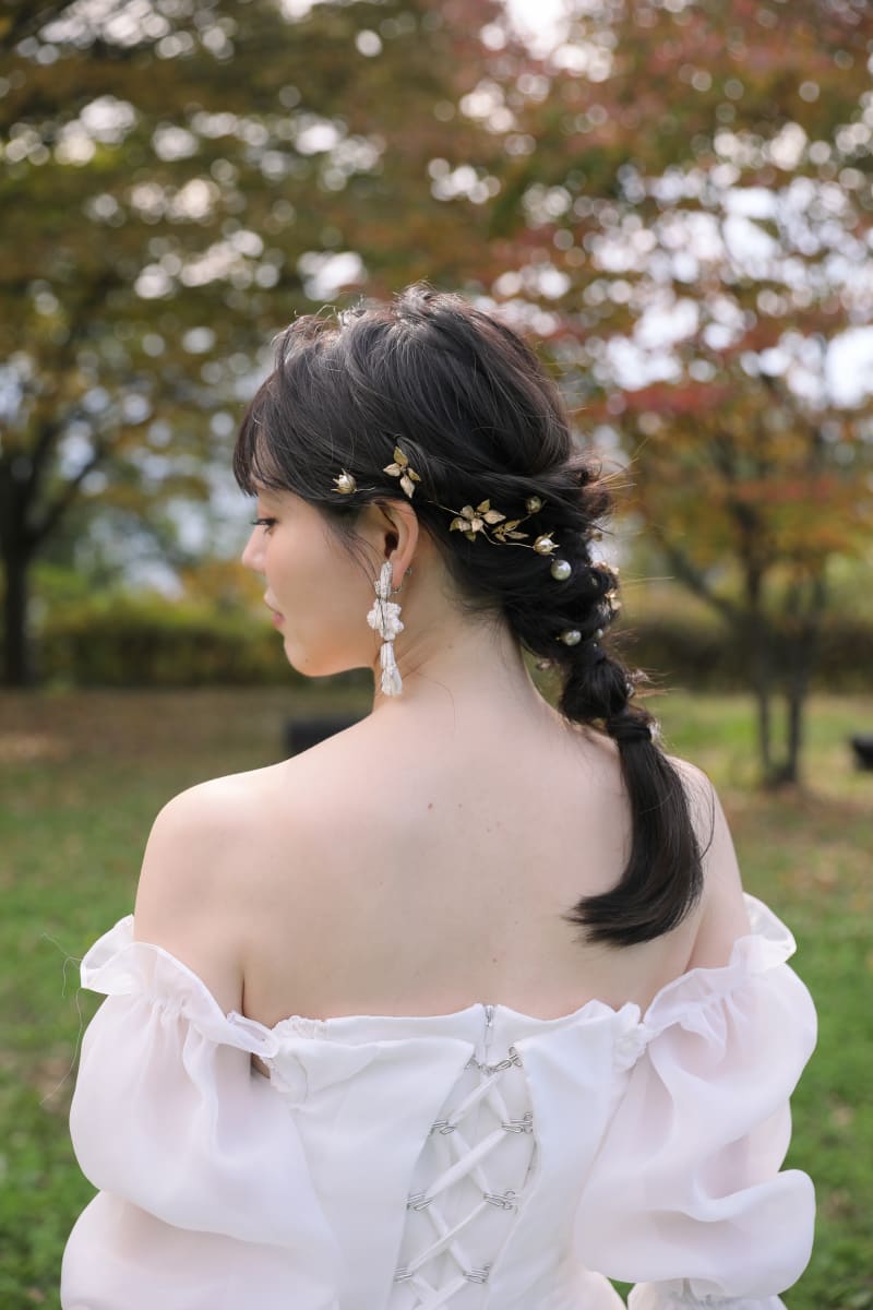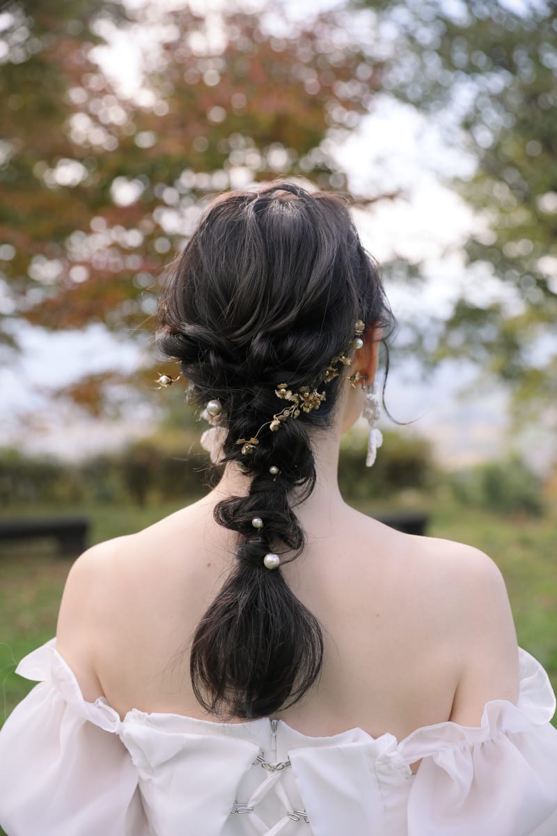 ヘアスタイルは玉葱さんあみおろしアレンジです。
