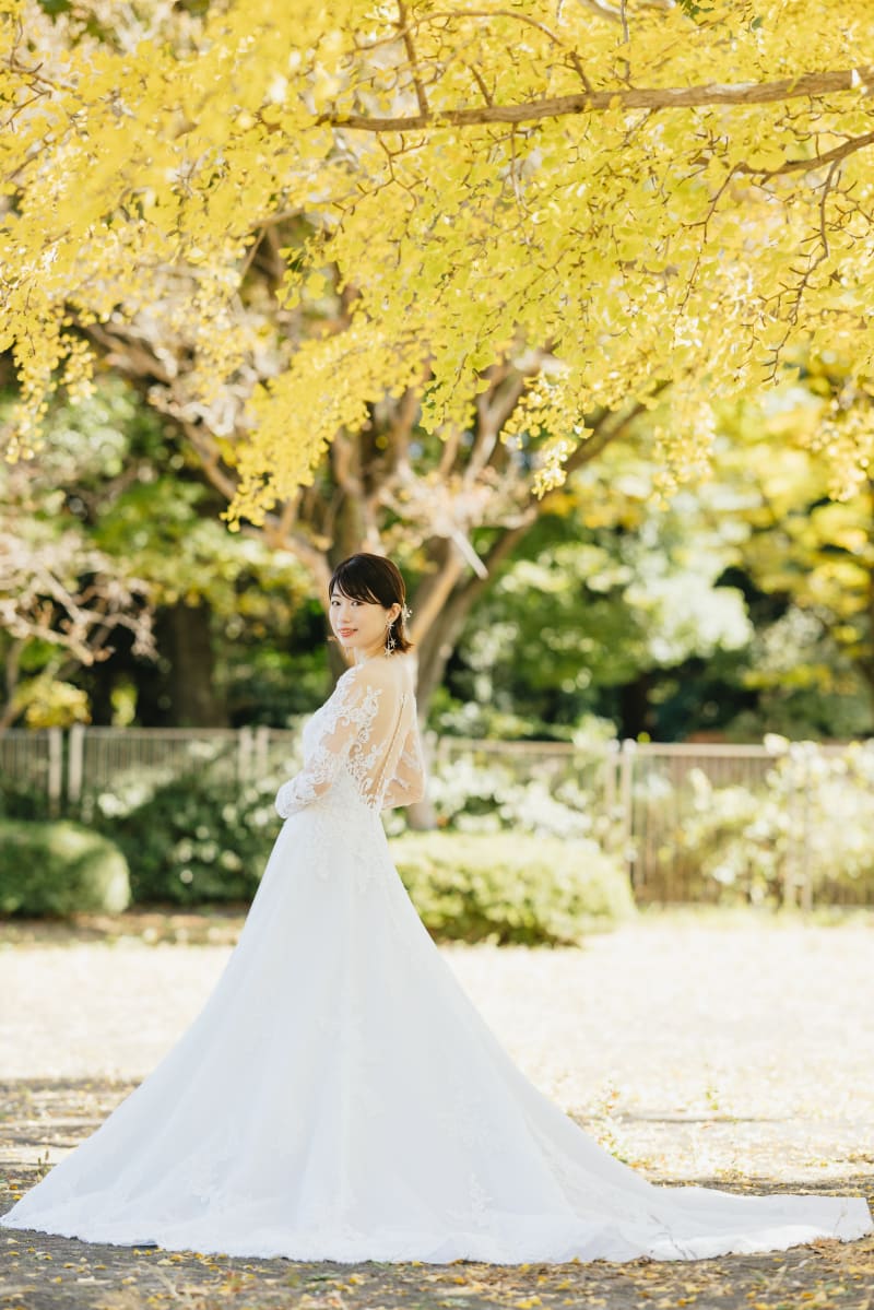 袖も合って大人な印象。なんと言っても背中も素敵に写ります。