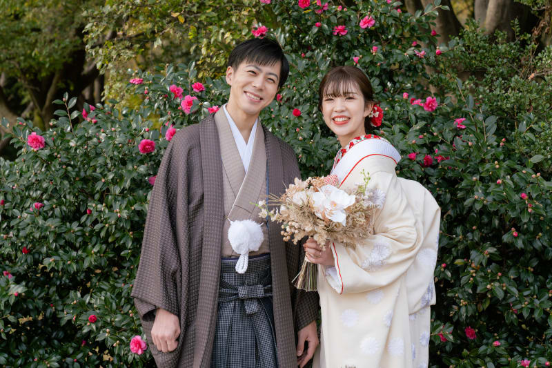 ブーケを持ったショットをご希望いただいていたので、お花の前で撮ってみました!