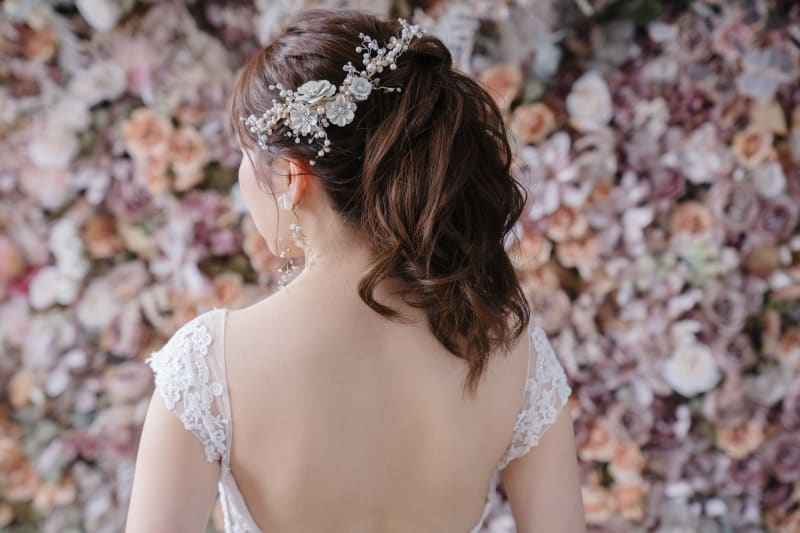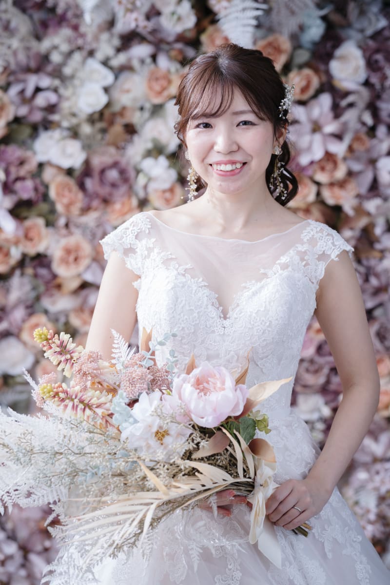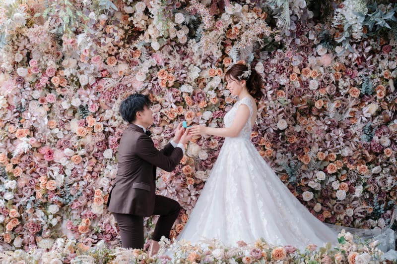 一面お花の壁が登場! 洋館風の立川店スタジオで撮影する洋装ウェディングフォトプラン