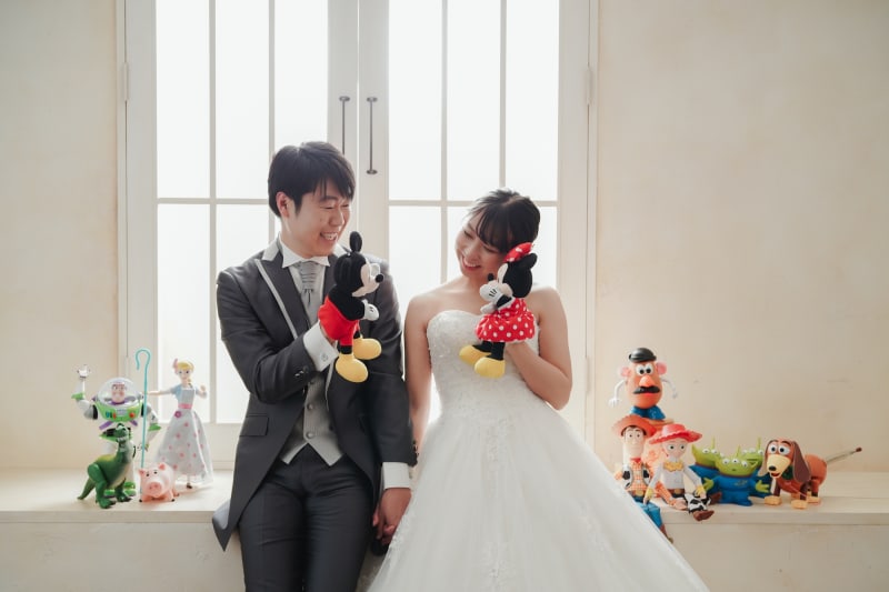 お二人の好きなものや思い出のものを お持ちいただくと、 お二人らしい世界観が広がり素敵な思い出になります☆
