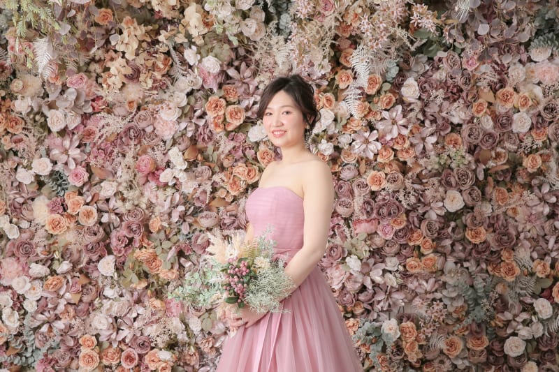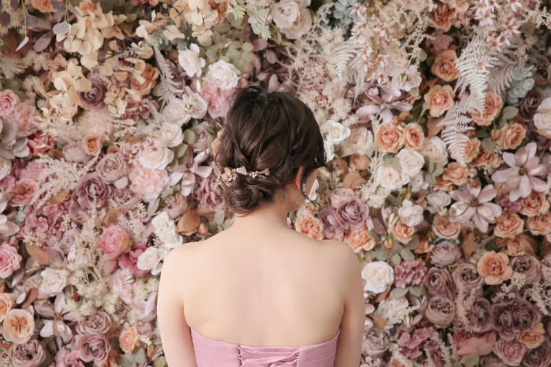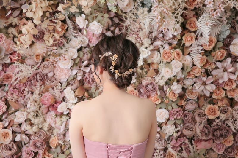 ピンクのドレスにゴールドのヘアアクセサリー✨