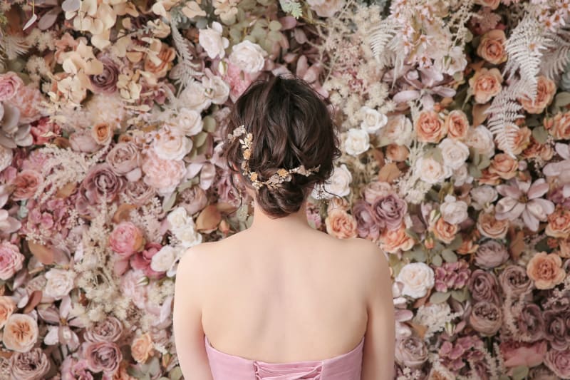 シニヨンを作る際に、前髪の分け目にそってトップのふわふわ加減にこだわっています。