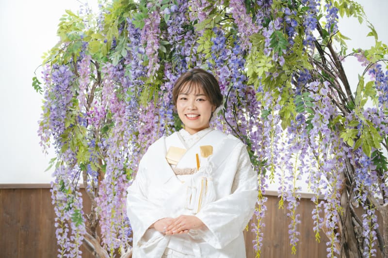 中もコーディネートしていて背景の藤の花と会いますね♪