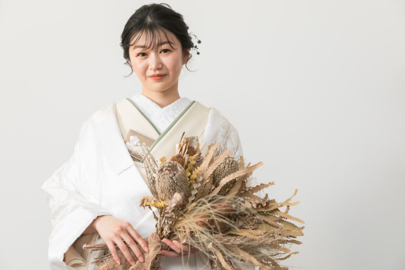 白無垢にはドライフラワーのブーケを合わせる方も多くいらっしゃします^^