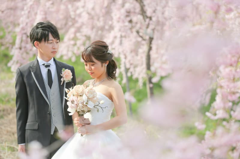 桜は和装だけでなく、洋装での撮影も素敵です♡