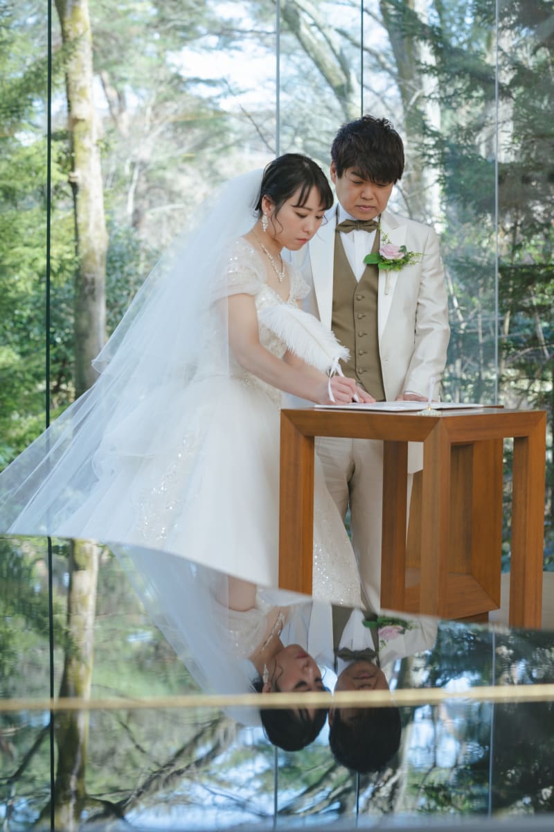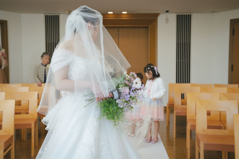 入場に始まり、指輪交換やベールアップなどお式の流れも撮影をしていきますので、
