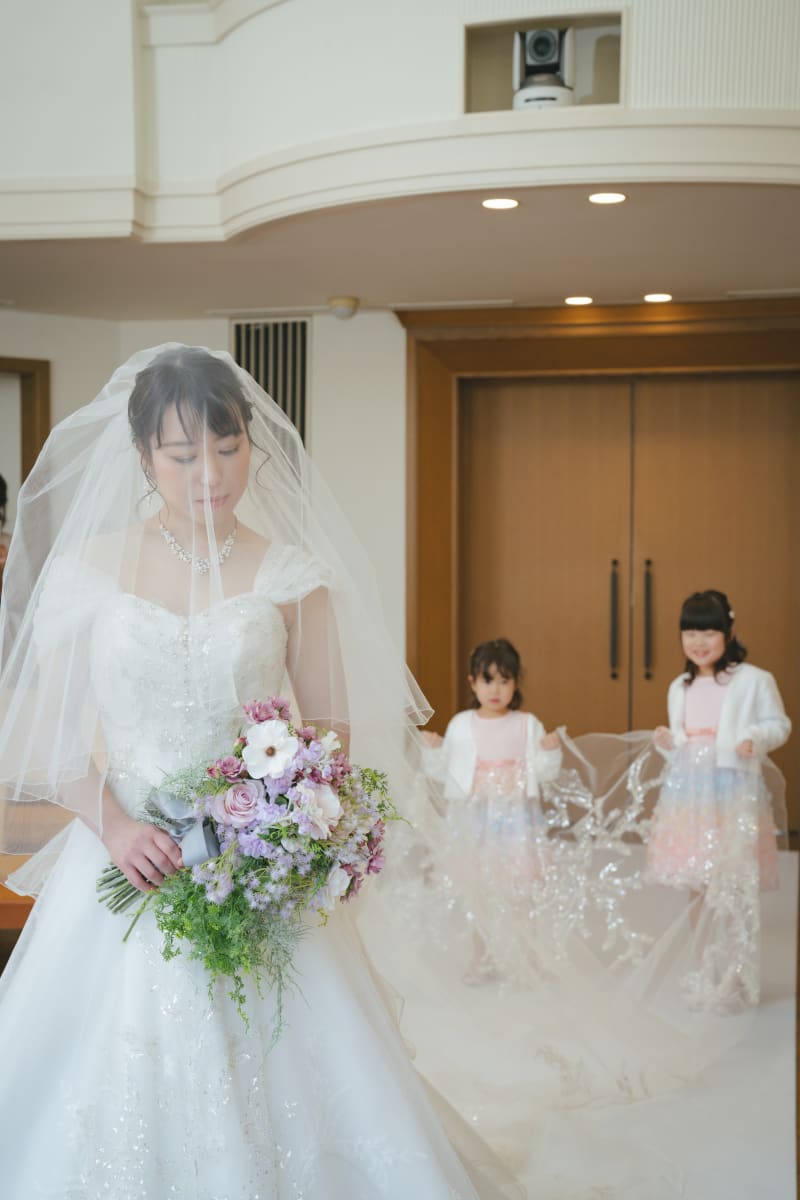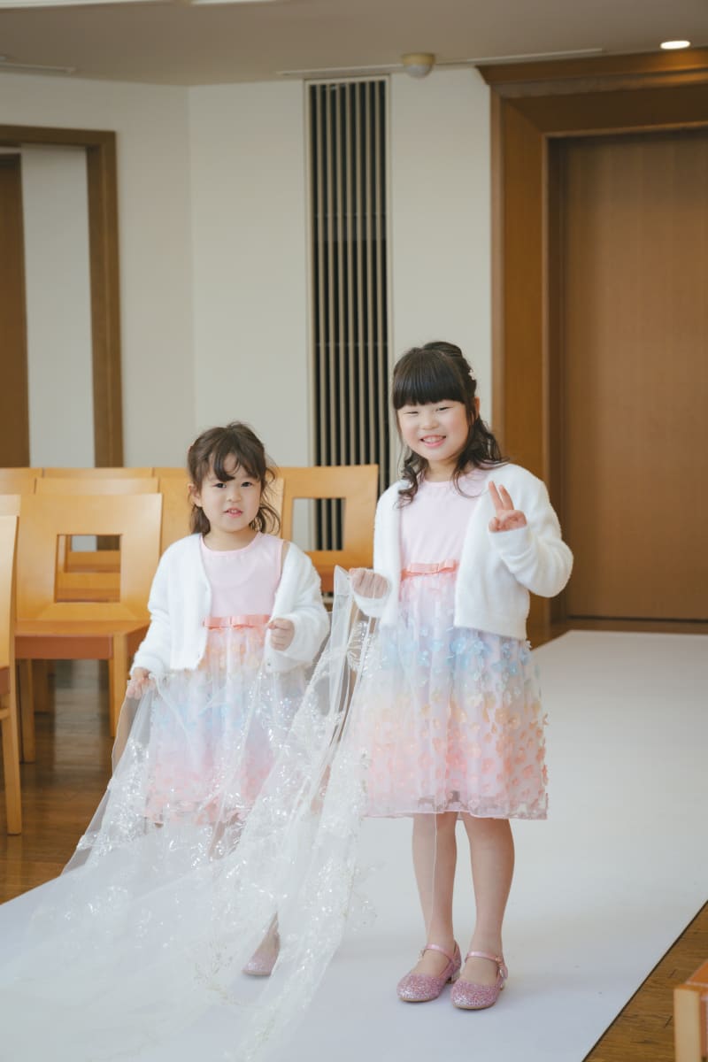 姪っ子ちゃんたちにベールを持って欲しいとのことだったので、