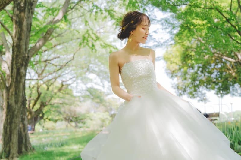 新緑の緑と真っ白なウェディングドレスの組み合わせが綺麗でした!