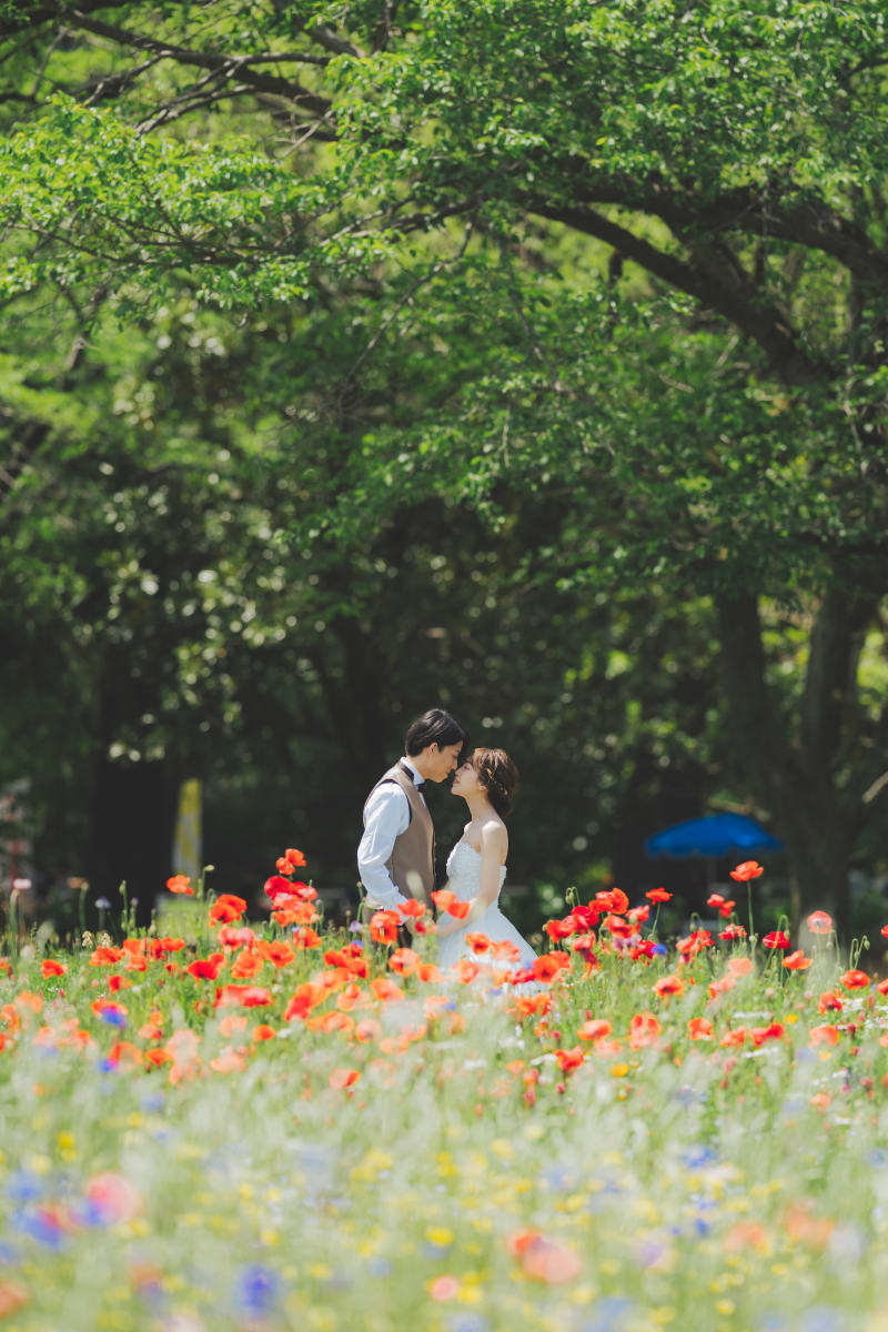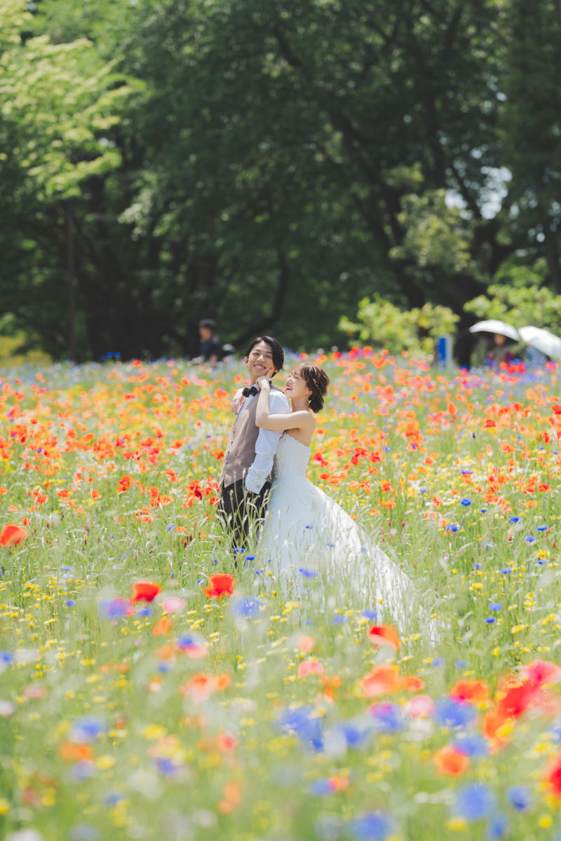 ブーケガーデンは色とりどりの花が咲いていてお花の中に埋もれて撮影することができます!