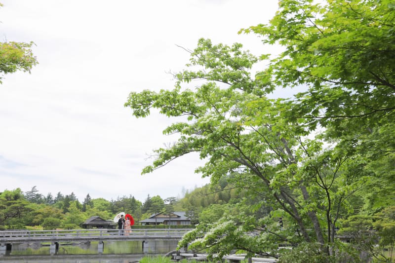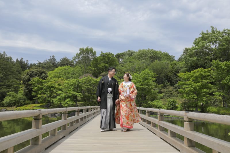 お客様が少ない時には、橋の真ん中でお散歩ショットが撮影できます!