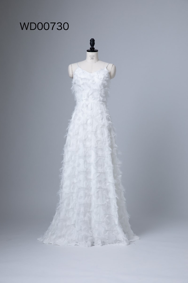 挙式ではなかなか着られないキャミソールタイプで背中や胸元の露出が少なく肌見せを抑えたいご新婦様におすすめです。