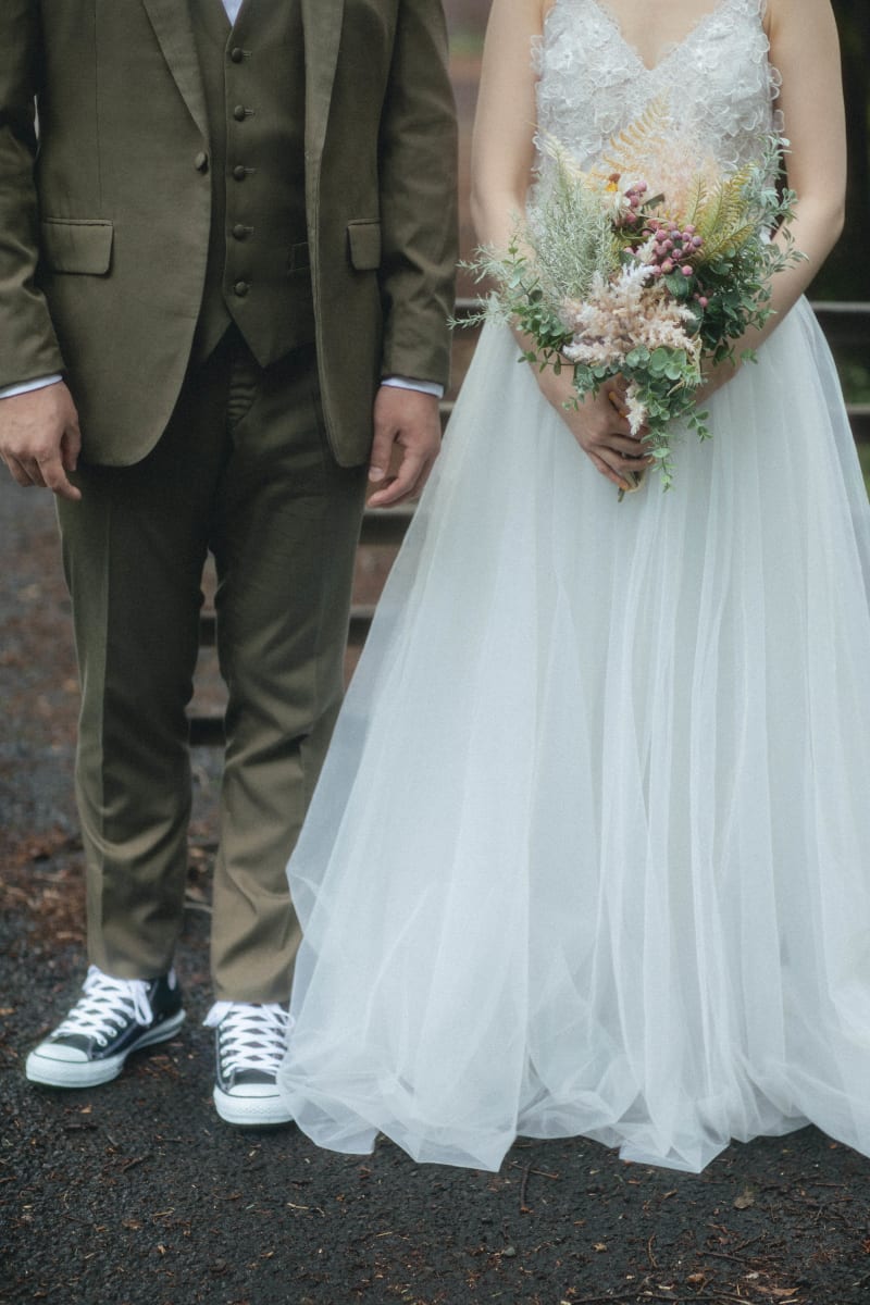 お揃いのスニーカー、新婦さんのチラッと見せが良いですね。