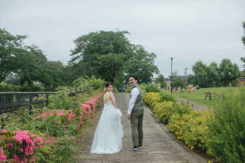 ロケーションなのに2人だけの空間が広がっていました!オシャレなお2人と雨上がりの雰囲気がとてもよく合っています◎