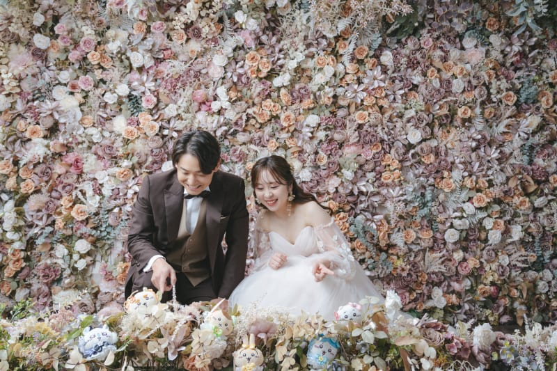 お花に埋もれさせてみたり、お二人に持っていただいたり!