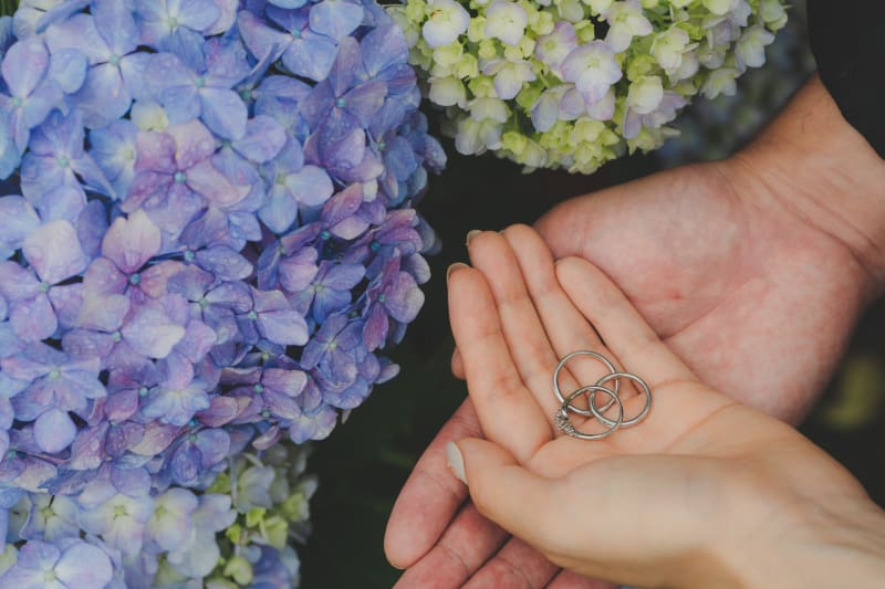 指輪のショットもお撮りさせて頂きました。紫陽花もしっかり入って季節感も出てますね◎