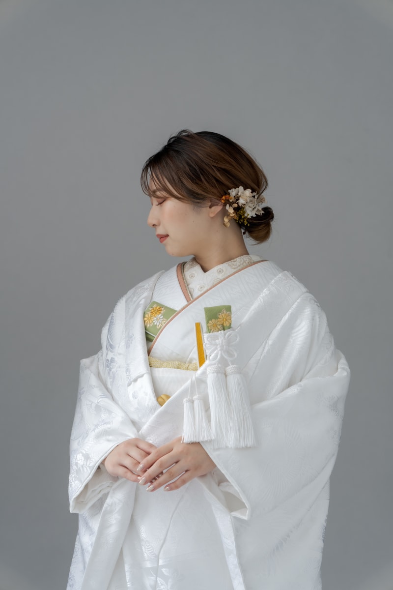 白無垢は着物自体にカラーが入っていないので、お好きな色を小物で取り入れやすいです!
