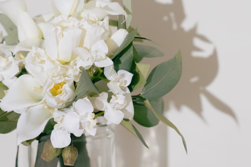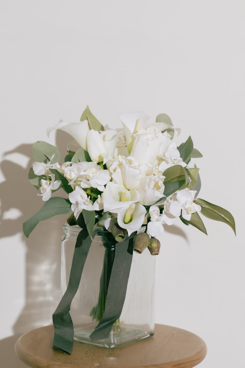 真っ白なカラーや胡蝶蘭が凛としていて、どのドレスとも相性抜群です!!