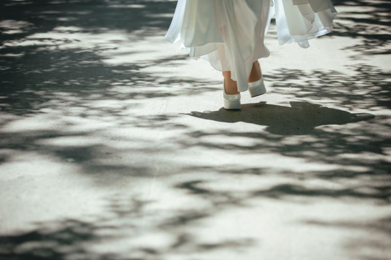 陸上部だったという新婦様はドレスのスカートを持ってヒールでダッシュ。