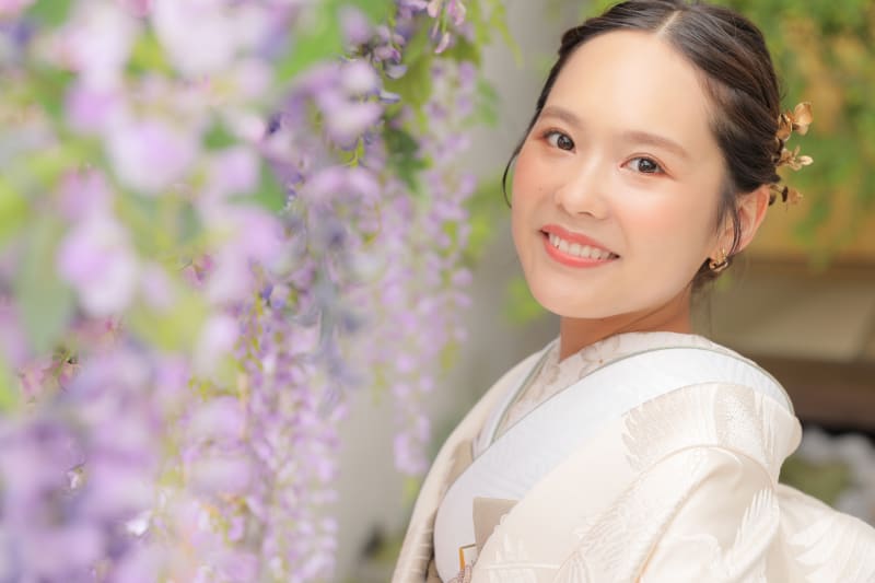 白無垢と藤の花の紫がとてもよくお似合いです✨