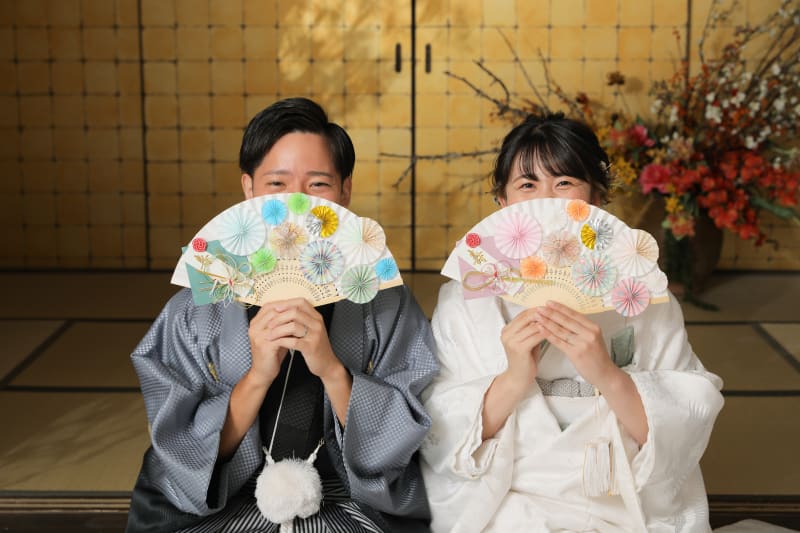 - お次は扇子です。お二人ご希望の目元チラッ写真です