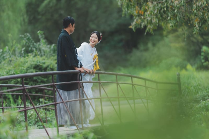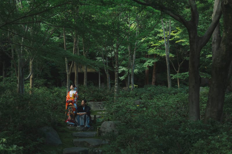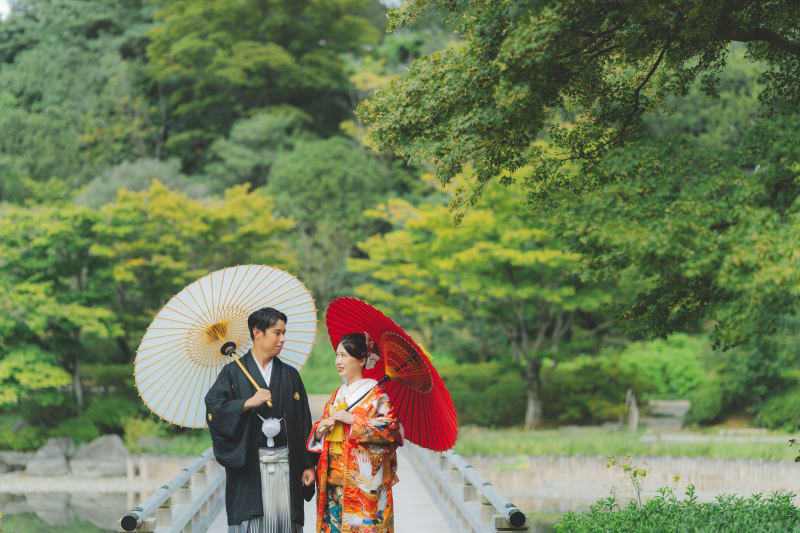 まずは緑豊かな日本庭園での撮影です